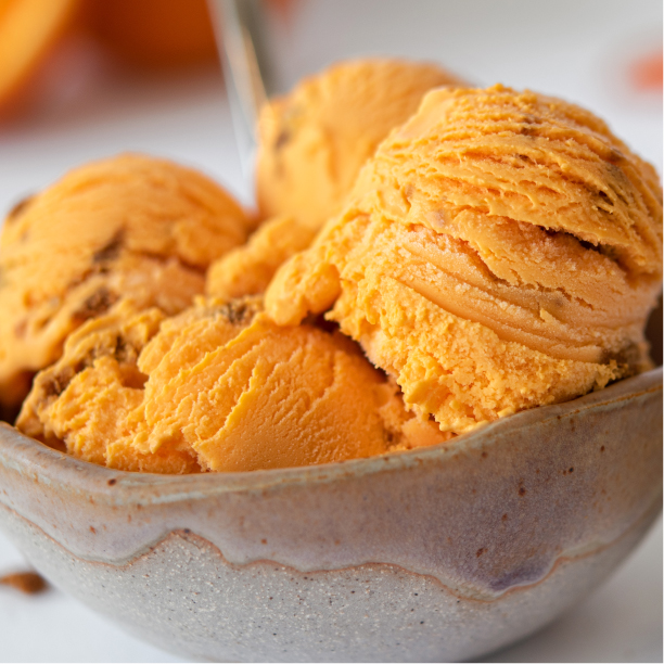 Subtle yet vibrant orange ice cream for flavors like orange vanilla or peach, with a usage rate of 0.16% w/w.